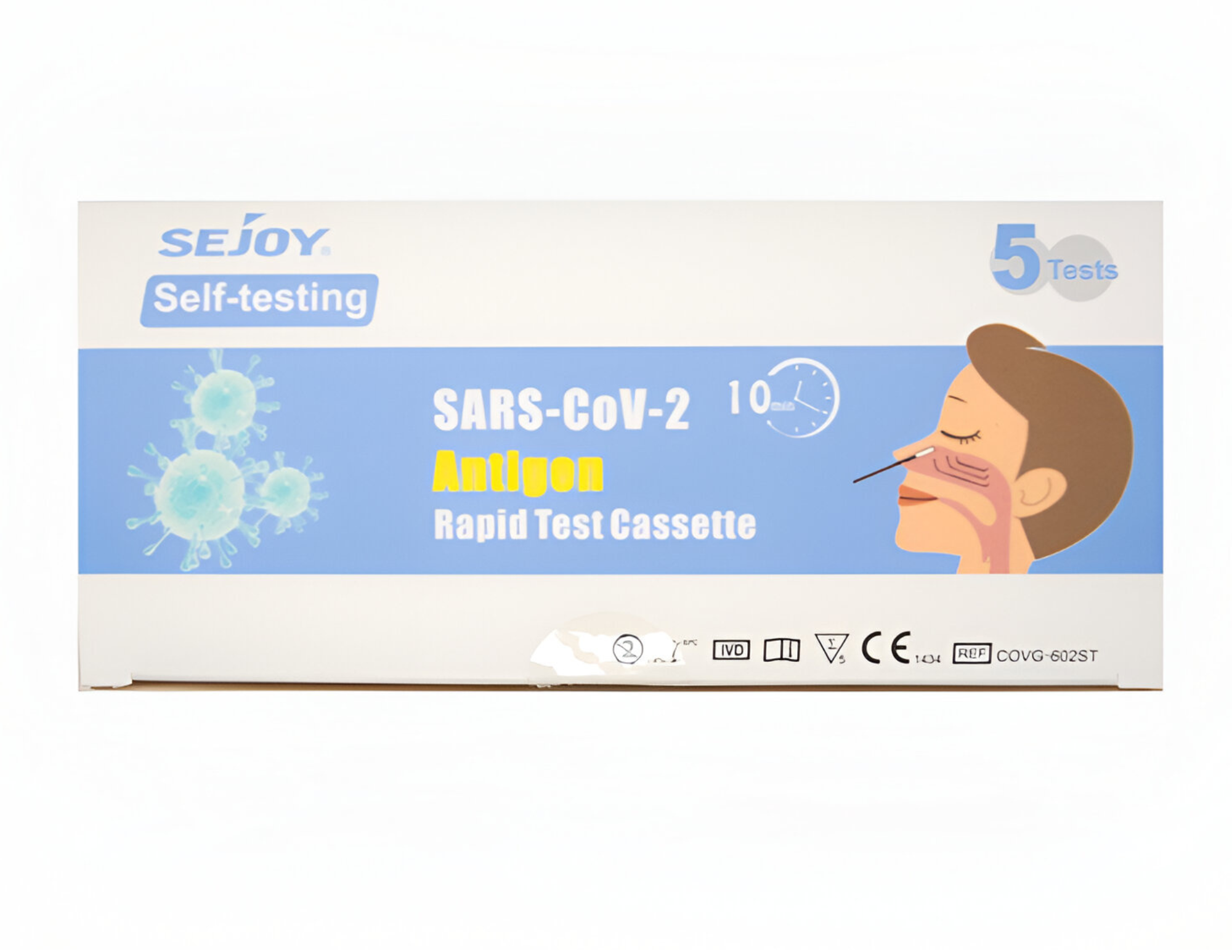 Les autotests COVID Sejoy en boîte de 5 unités permettent un dépistage rapide du SARS-CoV-2 à domicile. Chaque test fournit un résultat en 15 à 20 minutes à partir d’un prélèvement nasal, avec tout le matériel nécessaire inclus. Idéal pour un usage multiple ou familial.