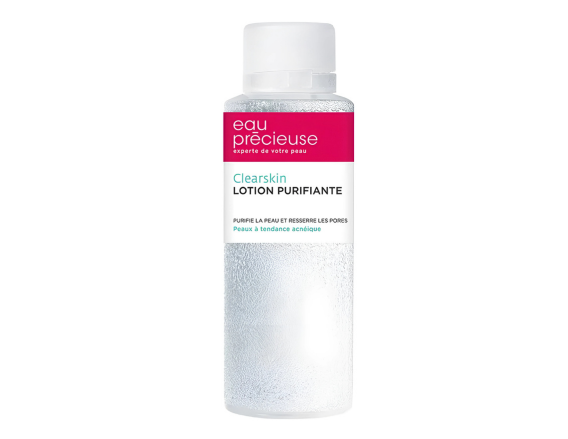 Notre mythique Lotion Eau Précieuse est destinée au soin des peaux à tendance acnéique. Son action purifiante et nettoyante permet d’éliminer les impuretés et l’excès de sébum pour une sensation de peau moins grasse, grâce à sa formule à base notamment d’acide salicylique et de glycérine. La lotion Clearskin resserre les pores de la peau. Elle complète votre routine de soins du visage et laisse votre peau propre.