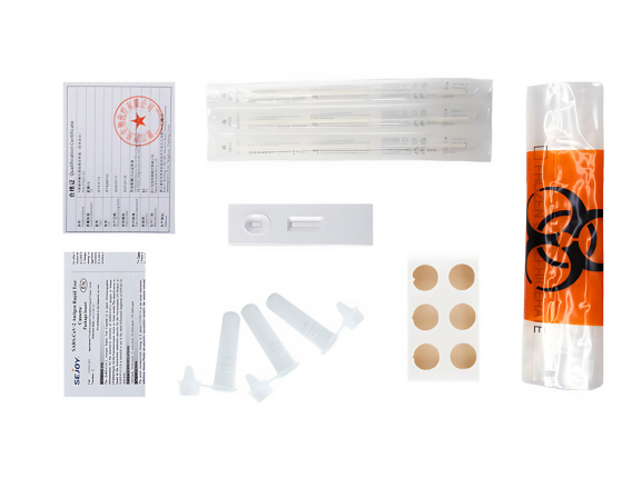 25 tests antigéniques Sejoy Combo Grippe/COVID-19. Le kit est spécifiquement conçu pour un dépistage rapide et fiable, permettant de détecter en même temps les infections au SARS-CoV-2 et aux virus grippaux A et B.